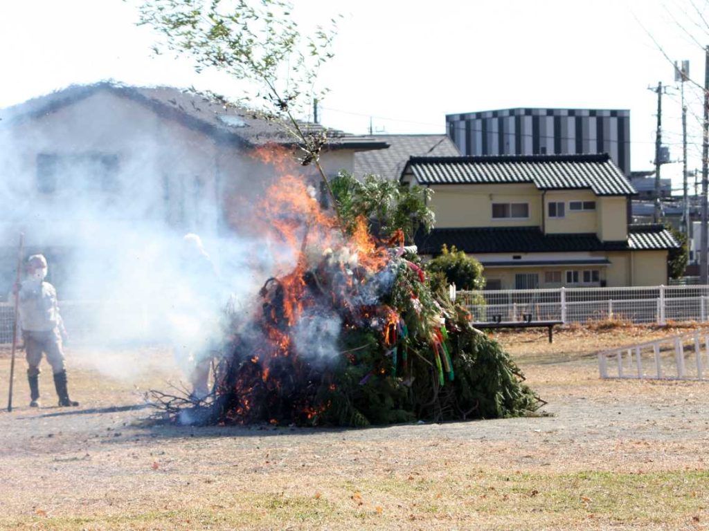 どんど焼きは、お正月に飾ったしめ縄や門松、お札などを持ち寄り、炎とともに一年の無病息災や家内安全を願う日本の伝統行事です。正月行事の締めくくりとして、新たな一年の始まりを感じられる大切な行事でもあります。会場では、火入れ前に丁寧に組まれたやぐらの前で準備が進められ、点火後は勢いよく燃え上がる炎を囲みながら、正月飾りを一つひとつ火の中に投げ入れる姿が見られました。また、どんど焼きの火で団子を焼き、温かいうちに味わう方も多く、冬ならではの楽しみを満喫する様子が印象的でした。